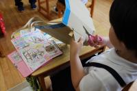 1年生 生活科 「がっこうたんけん」で撮った写真をみんなに紹介するための作業中です。