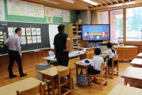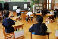 5年 白山麓の4小学校で行う5年生対象の合宿について話し合っています。どんな仕事をすればよいのか、経験者の6年生に聞きに行きました。