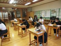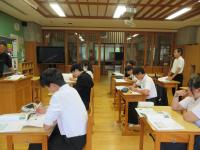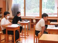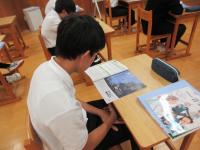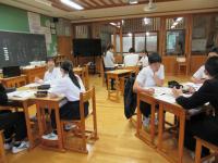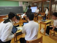 (中学3年)英語では既習事項の復習を、社会では大正デモクラシーについて、ペアやグループで取り組んでいます。
