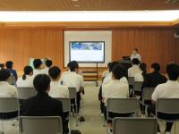 火災を想定した避難訓練を行いました。校長先生から、火災のときの煙の恐ろしさについてお話がありました。自分の命を守るために大切なことを確認したり、防火扉を開けて避難する体験をしたりしました。