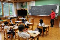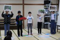 5年生 「山ろく4小学校 集合学習」 4つの小学校の5年生が、一泊二日の合宿を行います。第1日目、各学校の自慢できる行事や学校生活を紹介し合った後、班ごとに顔合わせと係分担などを行いました。