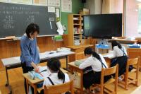 3年生 外国語活動 漢字の画数クイズをおこなっています。英語で画数を答えます。