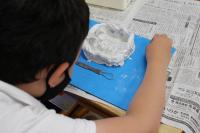 3・4年生 図工 3年生は「カラフルねんどでマイグッズ」 色つきの紙粘土で鉛筆立てや写真立てを作っています。4年生は「つないで組んですてきな形」 紙を編んだり結んだりしながら小物入れなどを作ります。