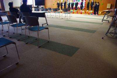月曜日の卒業式に向けて、全校児童生徒で予行演習を行っています。校舎の清掃や飾り付けも行っています。