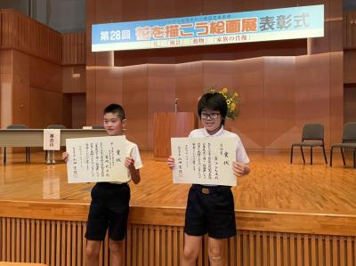第28回花を描こう絵画展表彰式にて、本校の児童2人が表彰されています。