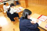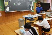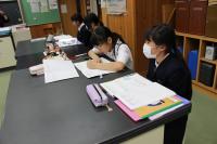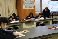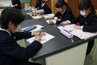 生徒たちは新聞記事を要約し、記事に対する自分の意見を書くことに真剣に取り組んでいました。今日は、能登半島地震や奥能登豪雨の被災地で他県の中学生がボランティア活動に取り組んでいるという記事でした。