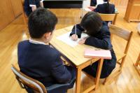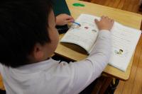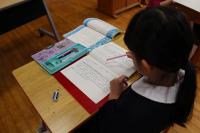 2年 国語 新しく学習した漢字の練習をしています。ていねいな文字を書いています。