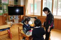 1・2年 音楽 「音楽に合わせてからだをうごかそう」 友達の考えた手拍子をまねしながらリレーします。