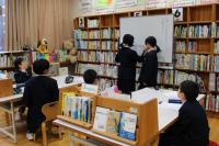 「図書館オリエンテーション」 新年度にあたって、改めて図書館の利用の仕方を学びました。図書館で本がどのように配置されているかを知り、実際に指定された種類の本を探す活動も行いました。