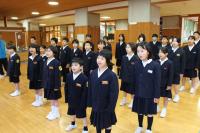 「白嶺交流集会」 小中学校 各委員会の委員長の認証式がありました。校長先生から認証状が手渡されます。新しい生徒会役員からは、前期生徒会目標の発表やあいさつ運動・緑の募金活動などのお願いがありました。