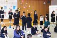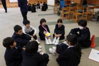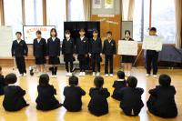 来週行う予定の「春のジオパーク学習」に向けて小中学生合同の集会がありました。縦割り班のメンバーとの顔合わせをした後、当日の山菜採り、天ぷら・あざみ汁・飯盒炊さんなど調理係の分担をしました。