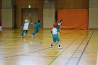 1・2年 体育 準備運動の後「こおりおに」を始める前に、先生のお話を聞いています。鬼になる子が3名選ばれました。作戦タイムの後、鬼ごっこスタートです。