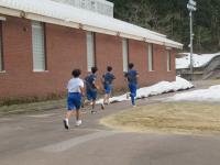 〈小中学校〉グラウンドの雪がまだ残っています。気温が上がりずいぶん減りましたが、今年は積雪が多かったためこの時期でも溶けていません。積雪から遊具を守る支柱なども外し、ようやくブランコや鉄棒、ジャングルジム、滑り台で遊べるようになりました。