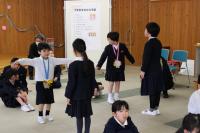 「1年生をむかえる会」 1年生へのインタビューやプレゼント渡しの他、たてわりグループでゲームをしたり全校で歌を歌ったりしました。1年生はみんな笑顔で過ごすことができ、5・6年生が企画・運営をしたこの会は大成功でした。
