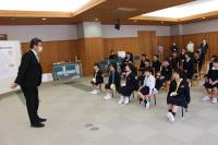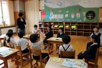 1年 「給食指導」 今日から始まる給食の時間のマナーや約束について、担任、栄養教諭、養護教諭から話を聞きました。