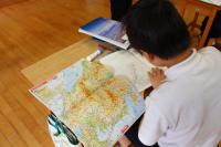 5年 社会「世界の中の国土」 大陸や海洋の名前、位置などを地図で確かめています。