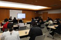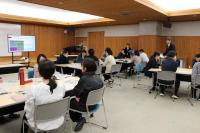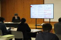 「授業力・学力向上について~子供主体の授業を通して~」 小中合同の教員が参加して研修会を行いました。白山市教育委員会の指導主事の講義後、グループ協議で今年度の学校研究の重点等について話し合いました。