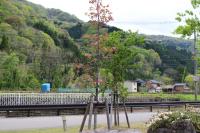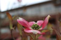 校庭のハナミズキは植樹から3年目。ピンク色の花が咲いています。