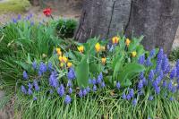 校庭にはシャクナゲの花が咲き始めました。チューリップも咲いています。