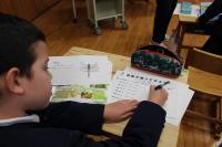 「図鑑の使い方」 3年生は国語の時間に図鑑の使い方を学習しました。図書館司書の先生から、図鑑の仕組みや索引などを教わった後、先生から出された問題を解くために自分で図鑑を使ってみました。