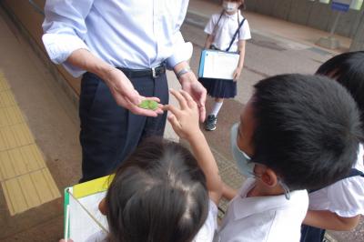 生活 秋を見つけに学校裏の円山公園に行きます。木の実やくっつき虫、マイマイカブリの仲間やオンブバッタを見つけています。