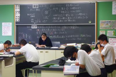 理科 風向きや風向など、天気図の見方について学んでいます。