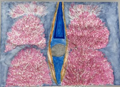 図工 クレヨンと絵の具で、濃淡を使い分けて描いています。