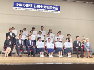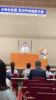 大きな会場での発表でしたが、どの学年も堂々として素晴らしい発表をしました。「白山麓の自然や伝統を大切にしていきたい」「20年後のふるさとのために私たちができること」などについて自分たちの考えや思いを伝えました。