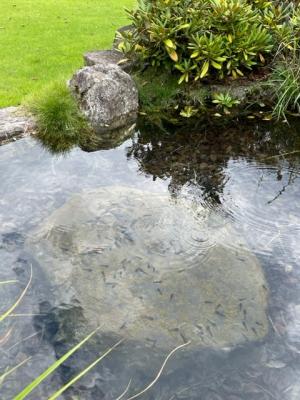 白山ろく少年自然の家で近隣の学校の5年生と一緒に学習活動を行っています。川に放った岩魚を手でつかみ、自分で捌き、焼いて食べています。