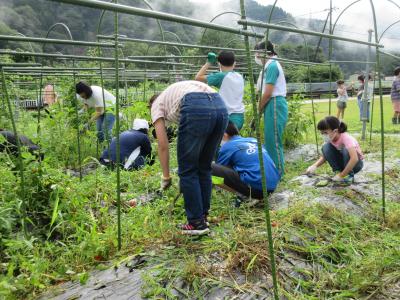 漢字練習をした後、モリアオガエルの観察や栽培している野菜の点検を行っています。
