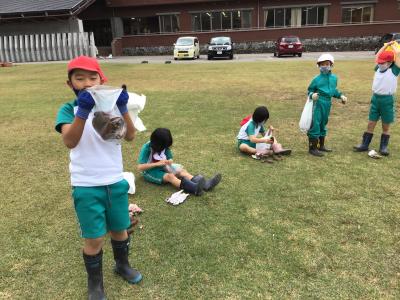 学校菜園のさつまいもを収穫しています。