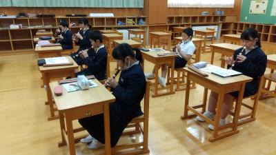 6年生もリコーダーの練習をします。演奏するために階名を書いています。