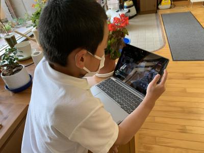 4年生も端末を使います。Teamsで会議を開くため、学校のあちこちに分かれます。