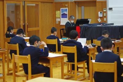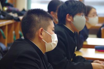 入試に向けての注意点を確認しています。3年生は月曜日からオンライン学習になります。
