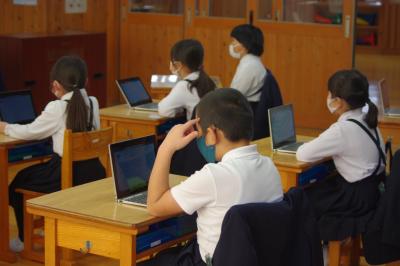 オンライン授業がいつでもできるように準備をしています。ICTサポーターさんの支援ももらい、操作の仕方を学んでいます。