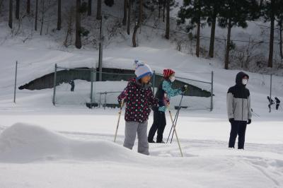 体育 毎週火曜と木曜は、給食を食べた後、クロスカントリースキーとアルペンスキーに分かれて白峰でスキーを行っています。今日のクロスの様子です。