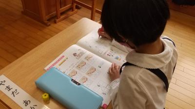 小学校1年算数 数の勉強をしています。6を、2と4に分解しています。