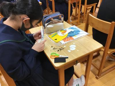 図工 卒業制作で彫刻刀を使うため、練習として葉っぱを彫っています。