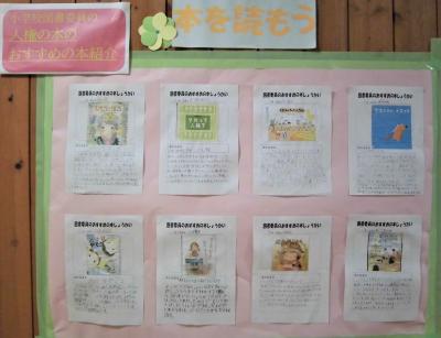 図書館前には小学校の図書委員会が作成した人権に関するおすすめの本が紹介されています。
