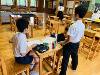 総合的な学習の時間 金沢グループ研修のプランづくりをしています。コロナ対策を盛り込んで作っています。