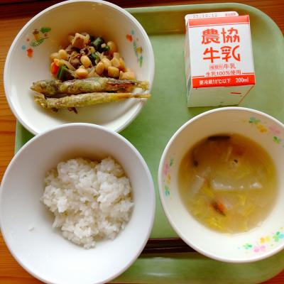 12/5 今日の給食 投稿日時 : 2023/12/05 hakurei 今日の献立は、「ごはん・牛乳・ししゃもの磯辺あげ・江戸っ子煮・鶏団子汁」です。鶏団子汁はみそ味の汁物です。 鶏ひき肉に、ねぎ・しょうがと調味料をまぜ団子を給食室で手作りしました。1人2個ずつきっちり分けました。