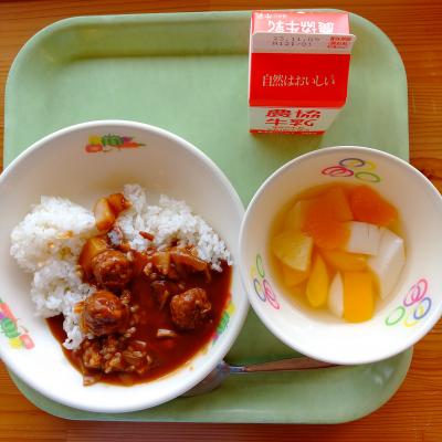 11/2 今日の給食 投稿日時 : 2023/11/02 hakurei 今日の献立は、「麦ごはん・牛乳・ミートボールのハヤシライス・フルーツ杏仁」です。今日は、ミートボールを給食室で1つ1つ手作りし、身がくずれないようにスチコンで焼いてからシチューに入れました。とてもおいしかったです。