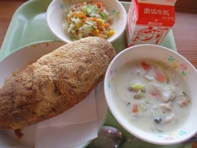 10/29 今日の給食 投稿日時 : 2024/10/29 hakurei 今日の献立は「きなこ揚げパン、牛乳、ツナサラダ、秋のクリームシチュー」です。写真のパンは中学生用のパンです。小学校低学年、中学年、高学年、中学生と4段階で年齢に応じた量で提供しています