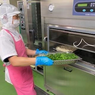 加熱した後、しっかりと冷やして、ギリギリの時間に調味液とあえます。出来上がりの温度を確認して、記録します。