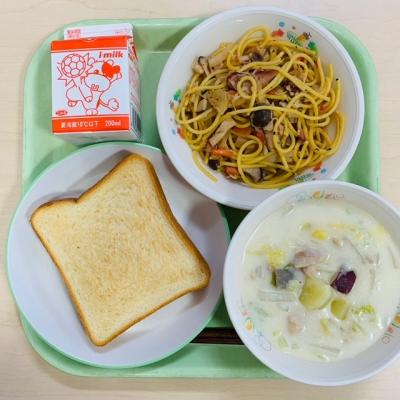 2021.12.9 木曜日 投稿日時 : 2021/12/13 hakurei 今日の給食は「トースト 牛乳 きのこスパゲティ 白菜のクリーム煮」です。 食パンはトーストしてあります。 シチューにつけてもよし、別に食べてもよし。 スパゲティをのせてもよし。 食べ方はいろいろです。