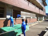 今日の3・4限目に、全生徒と教職員で校舎の冬支度を行いました。冬季の積雪に備えるもので、校舎回り・体育館周辺等を雪囲いの板やネットで覆います。力仕事も多いのですが、生徒は協力し合って作業してくれました。おかげで校舎は装いも新たに冬を迎えられそうです。