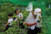 2年 生活科 畑の作物を収穫しました。ミニトマトがたくさんありました。
