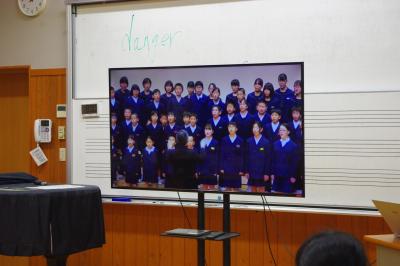 音楽 自分たちが合唱する過去の姿を映像で振り返っています。