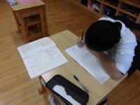 〈小学校〉1・2・6年生 年賀状を書きました。文字やイラストを丁寧に書いています。