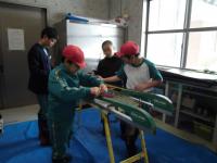 3・4・5・6年生は、3学期にクロスカントリースキーを行います。今日は5・6年生が3・4年生に準備の仕方を教えてくれました。板の手入れや靴のサイズ合わせをしました。